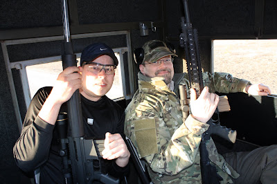 Iian Harrison, the winner of the first "Top Shot" TV show is a good egg and now the Public Relations manager for Crimson Trace, and he was nice enough to take our three guys to the rifle range on the grounds for some rudimentary safety and shooting instruction. From what I hear, he did a great job, and the guys were pretty comfortable with the firearms when he was finished. I was on another project at the time. Thanks, Iian.