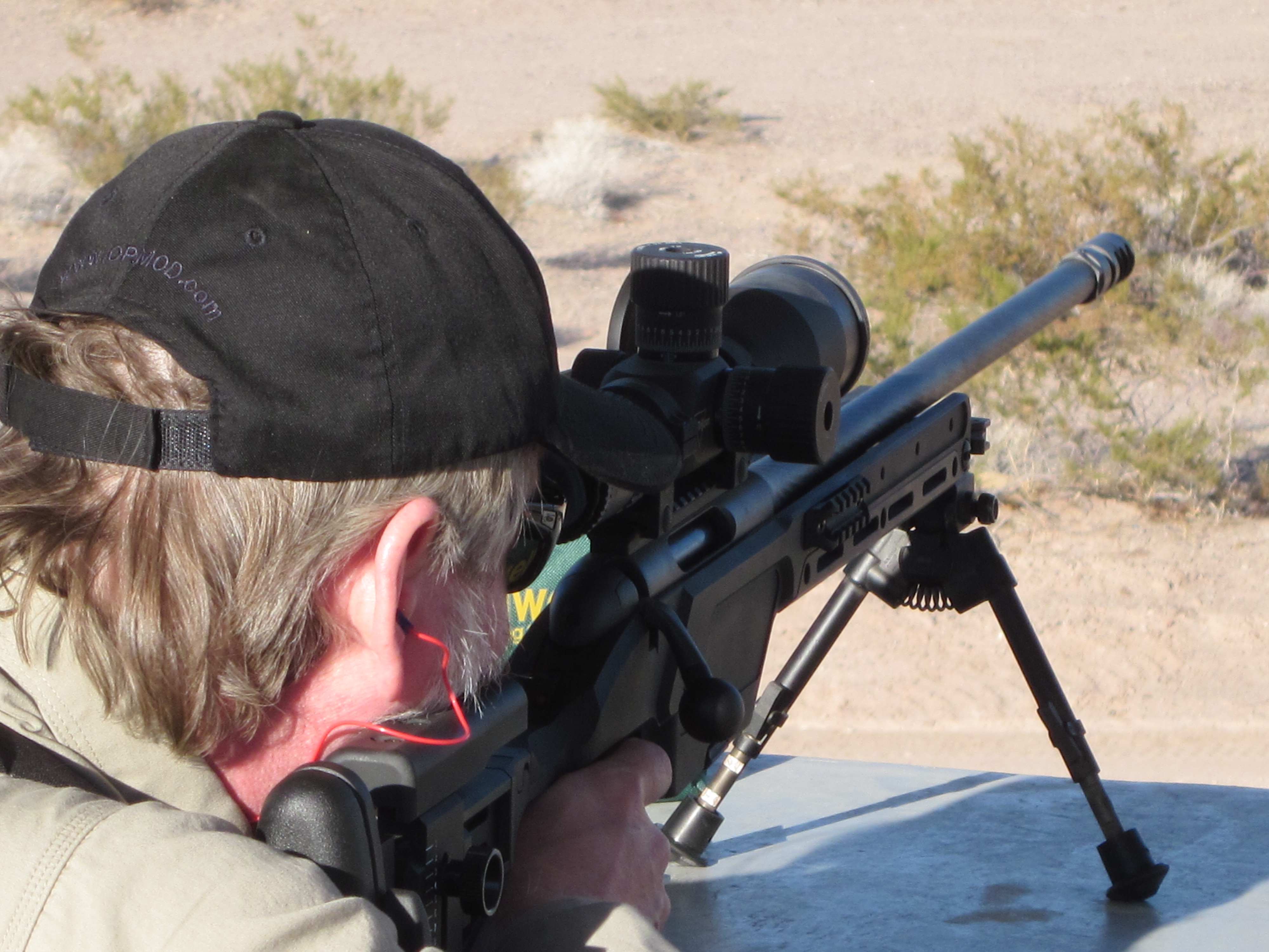 I like shooting long range, and a Steyr SSG08 was a similar rifle to my own SSG69. I have always loved Steyrs, and this gun at the range was topped with the new Trijicon 3-15×50 TARS (Trijicon Advanced Riflescope System). 900 yard shots were like a bad habit. Too easy. Eminently superb combination of products.
