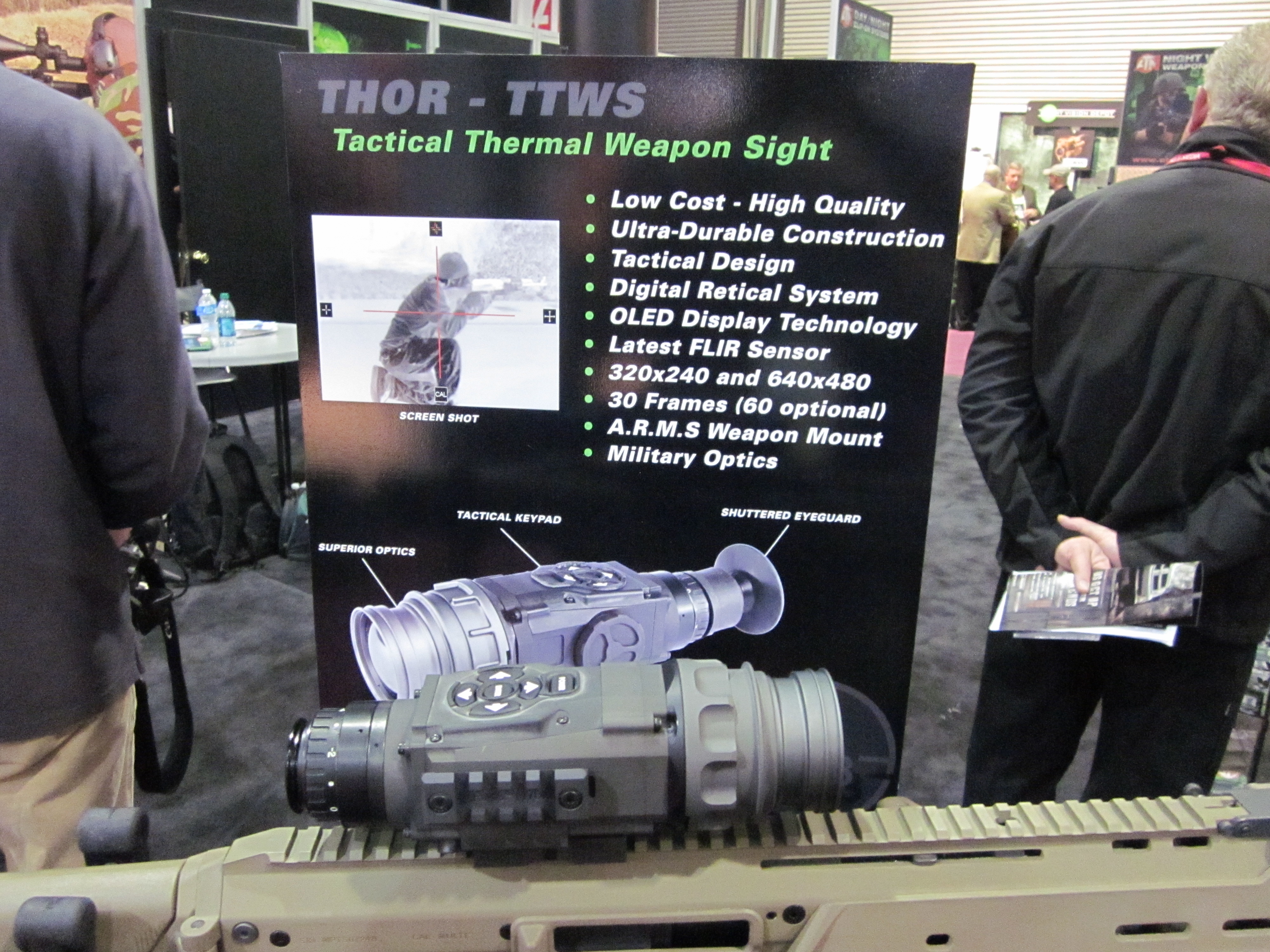 Leupold not only had the coolest new product that we’ll sell this year, but the THREE coolest products we’ll sell. Those three are the new Mark 4, Mark 6s, and the incredible new Mark 8 3.5-25×56 M5B2. Yow! What a scope. This new Mark 8 gets my vote for the coolest new product at SHOT that we sell. It had a 35mm tube, Horus H58 reticle, and the superb pinch and turn turrets. This is the most awesome scope I know of, period. It gets my “2012 Best at SHOT Award” this year. In second place is the new Mark 4 6.5-20×50 ER/T with M5A2 push button turret has a 34mm tube, Horus reticle, and is the optic on our newly adopted XM1200 sniper weapons system. Third place goes to the new Mark 4 3-18×44 with 34mm tube, M5B2 pinch and turn turrets and Horus reticle. These three scopes represent the pinnacle of cutting edge riflescope technology available today from any manufacturer, bar none. Of course, you gotta pay the man for what you get. These are not price point optics. Quality control at Leupold is as good as a company gets. I personally saw it in Beaverton when I toured the facility and shot in their tunnel.