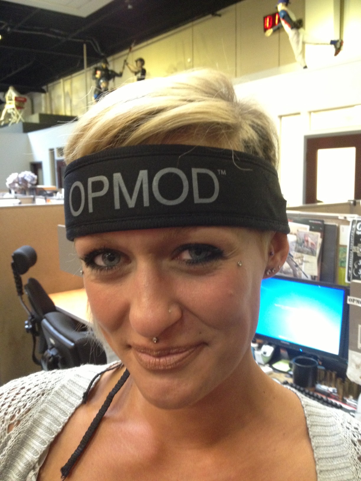 It's not all for work, though. Here's our lovely Heather with an OPMOD headband: