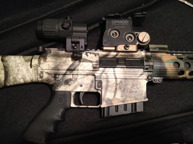 The R-25 is required because of the optic I'll be using. I'm going hunting with EOTech, and because of the optical center of the OPMOD EXPS-3, the AR type platform almost certainly must be used.