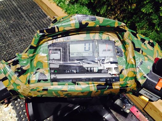 The Battlescooter was born from My Shirley's totaled 1985 Honda Elite 250. We got her an identical one to replace it, and after she crashed that one I make a great one out of the best parts from both bikes, and I took all the broken stuff for the Battlescooter. The duct tape keeps what's left of the instrument panel together, and also prevents rain from shorting any of the exposed wiring. None of the gauges work, but chicks did scars. That must be why My Shirley likes me. What a beauty, this cycle. New tires, new grease, pounded out wheels, and the occasional shocking backfire still lets this popcorn machine with a weed-wacker engine get up to 80.